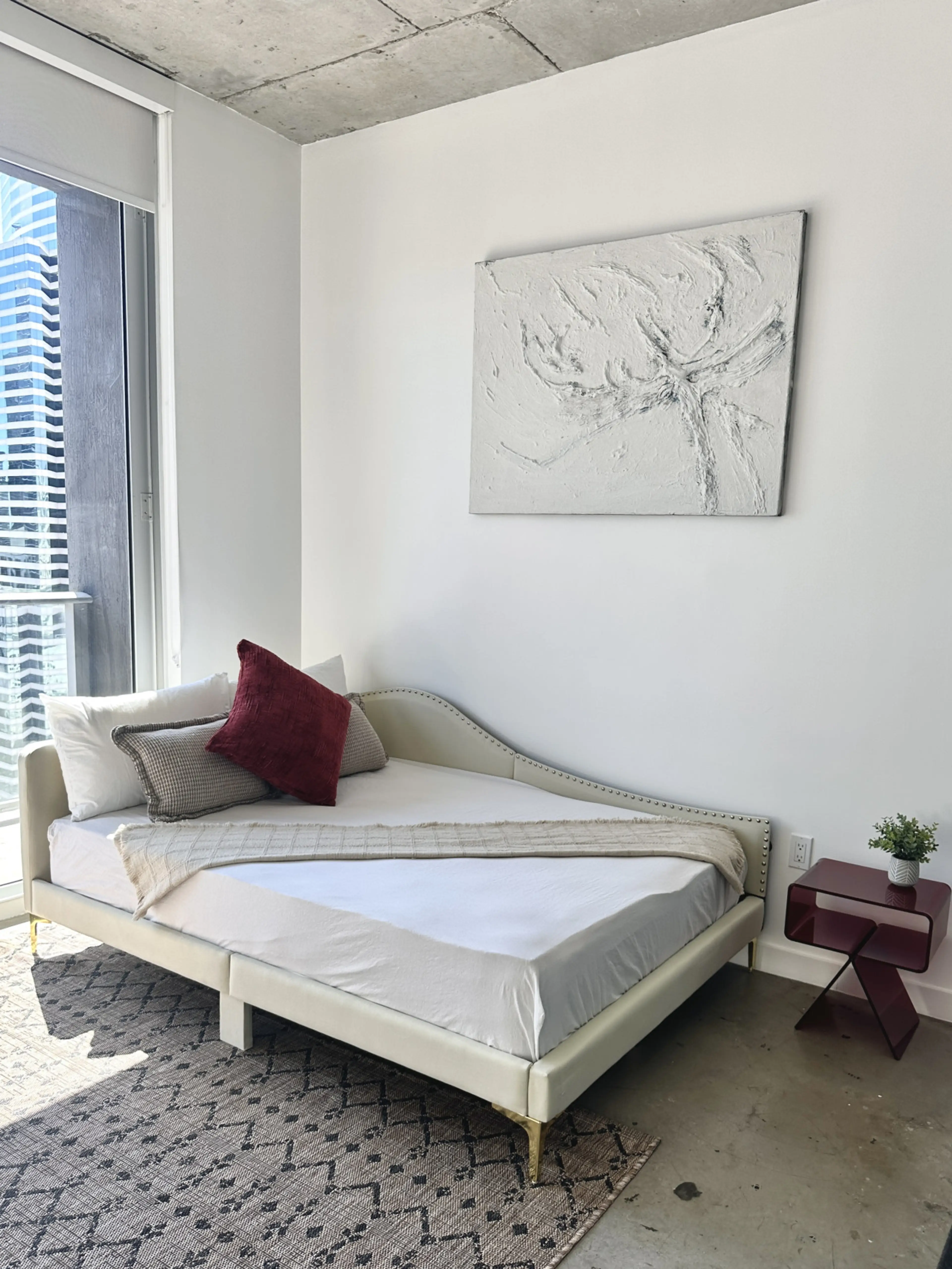 Centrally located, you'll find restaurants, bars, and Whole Foods within walking distance. Designer furniture complements the high ceilings and premium amenities: sky lounge, state-of-the-art gym, sauna/steam room and a sunny rooftop pool. Our spacious units offer the perfect Miami retreat.